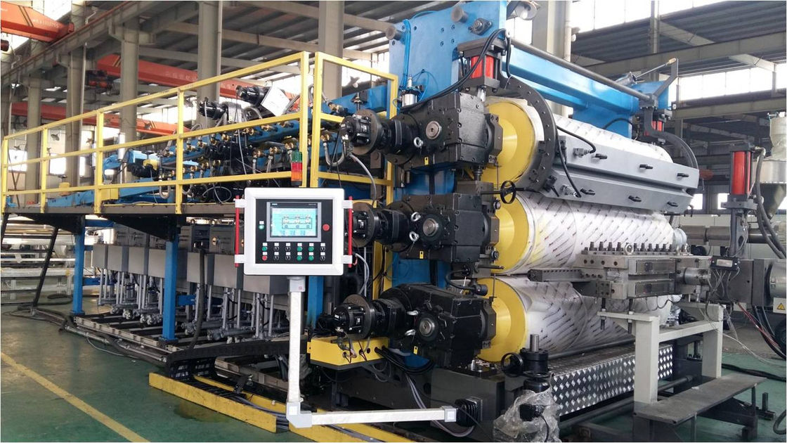 (1) Ο σχεδιασμός με μία βίδα για την παραγωγή φύλλου PET μπορεί να κάνει το φύλλο με υψηλή διαφάνεια σε σύγκριση με τον σχεδιασμό με δίδυμες βίδες.δεν μπορεί να προστεθεί πολύ ανακυκλωμένο υλικό PETΚαι θα πρέπει να υπάρχει ένα σύνολο κρυστάλλωσης και συσκευής ξήρανσης για την προεπεξεργασία του υλικού PET.